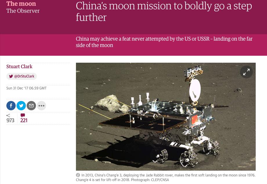 近日,英国《观察家报》网站以“中国2018年的探月工程大胆地更进一步”为题报道了中国在探月方面的进展。报道称,中国可能会尝试其他航天大国从未做过的事情——在月球的背面着陆。