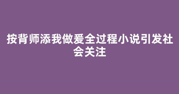 大家好,今天我来和大家聊一聊关于按背师添我做爰全过程小说引发社会关注的问题。在接下来的内容中,我会将我所了解的信息进行归纳整理,并与大家分享,让我们一起来看看吧。