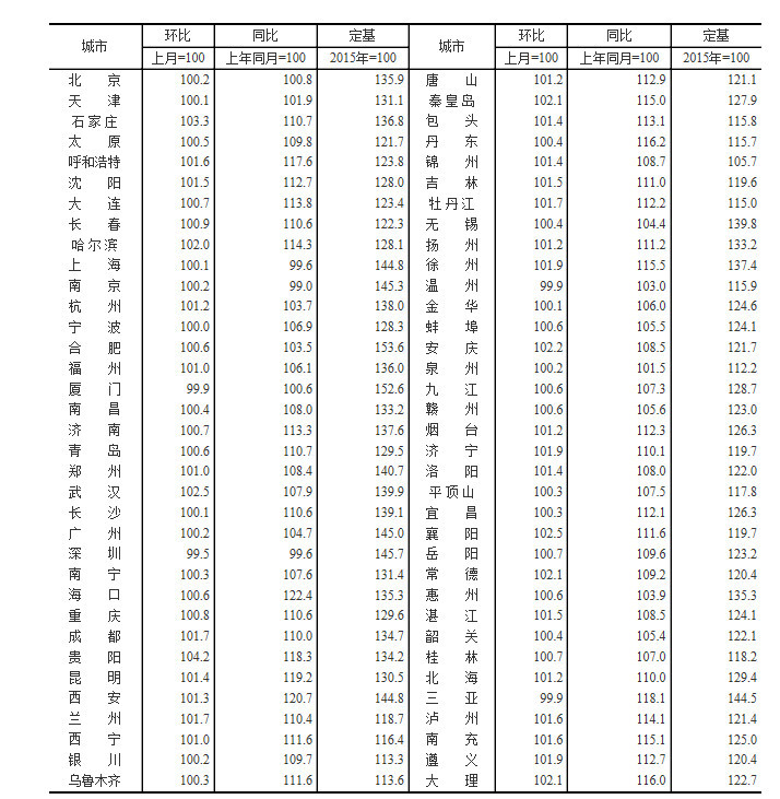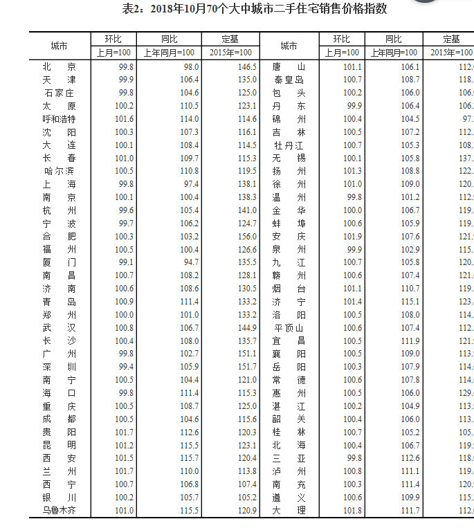 北京10月二手住宅销售价格指数环比-0.2%(前值-0.2%),同比-2.0%(前值-2.2%)。