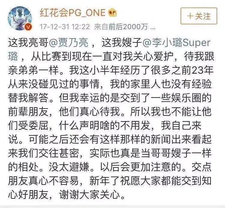 傍晚的时候,贾乃亮也发微博回应了,选择了相信。